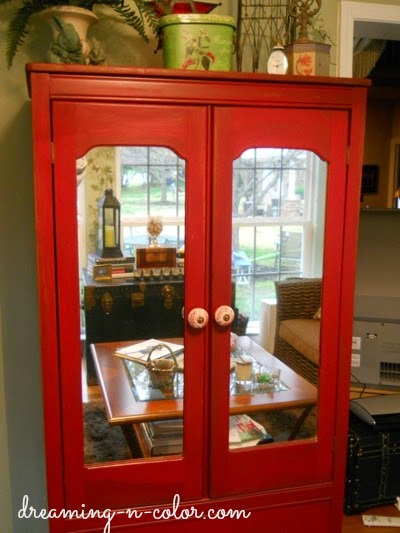 wow- it looks great in red.. I love it and you've inspired me to paint mine - though it has no mirrors or glass....