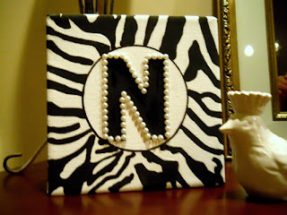 The customer wanted it to be modern and classy. I painted zebra stripes and added pearl detailing to the initial. Wrapped in my signature wrapping and it was ready to go!